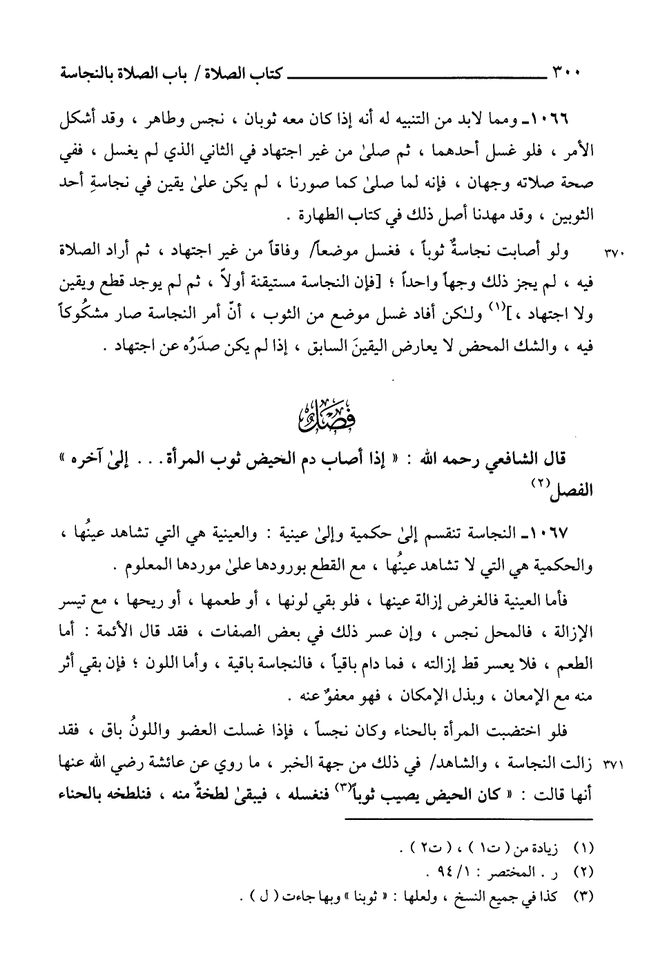 قال الشافعي رحمه الله: "إذا أصاب دم الحيض ثوب المرأة ... إلى آخره" الفصل (¬2)