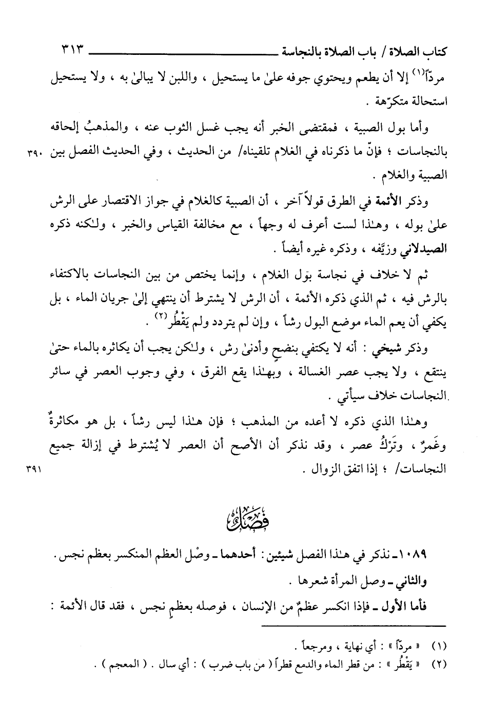 1089 - نذكر في هذا الفصل شيئين: أحدهما - وصْل العظم المنكسر بعظم نجس.