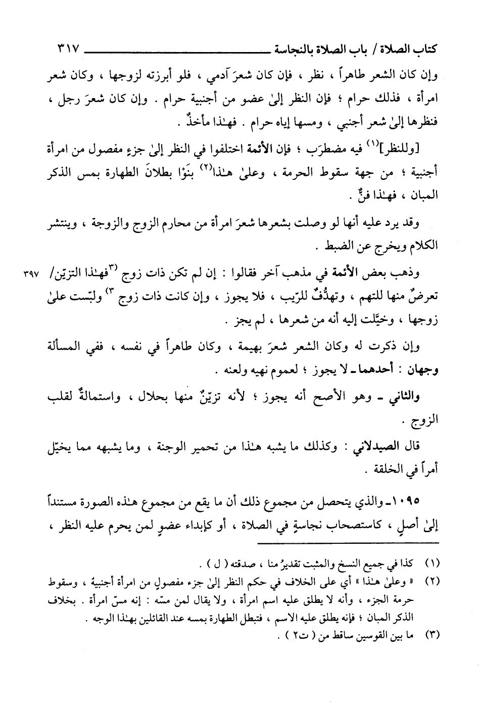 وإن كان الشعر طاهراً، نظر، فإن كان شعرَ آدمي، فلو أبرزته لزوجها، وكان شعر امرأة، فذلك حرام؛ فإن النظر إلى عضو من أجنبية حرام. وإن كان شعرَ رجل، فنظرها إلى شعر أجنبي، ومسها إياه حرام. فهذا مأخذٌ.