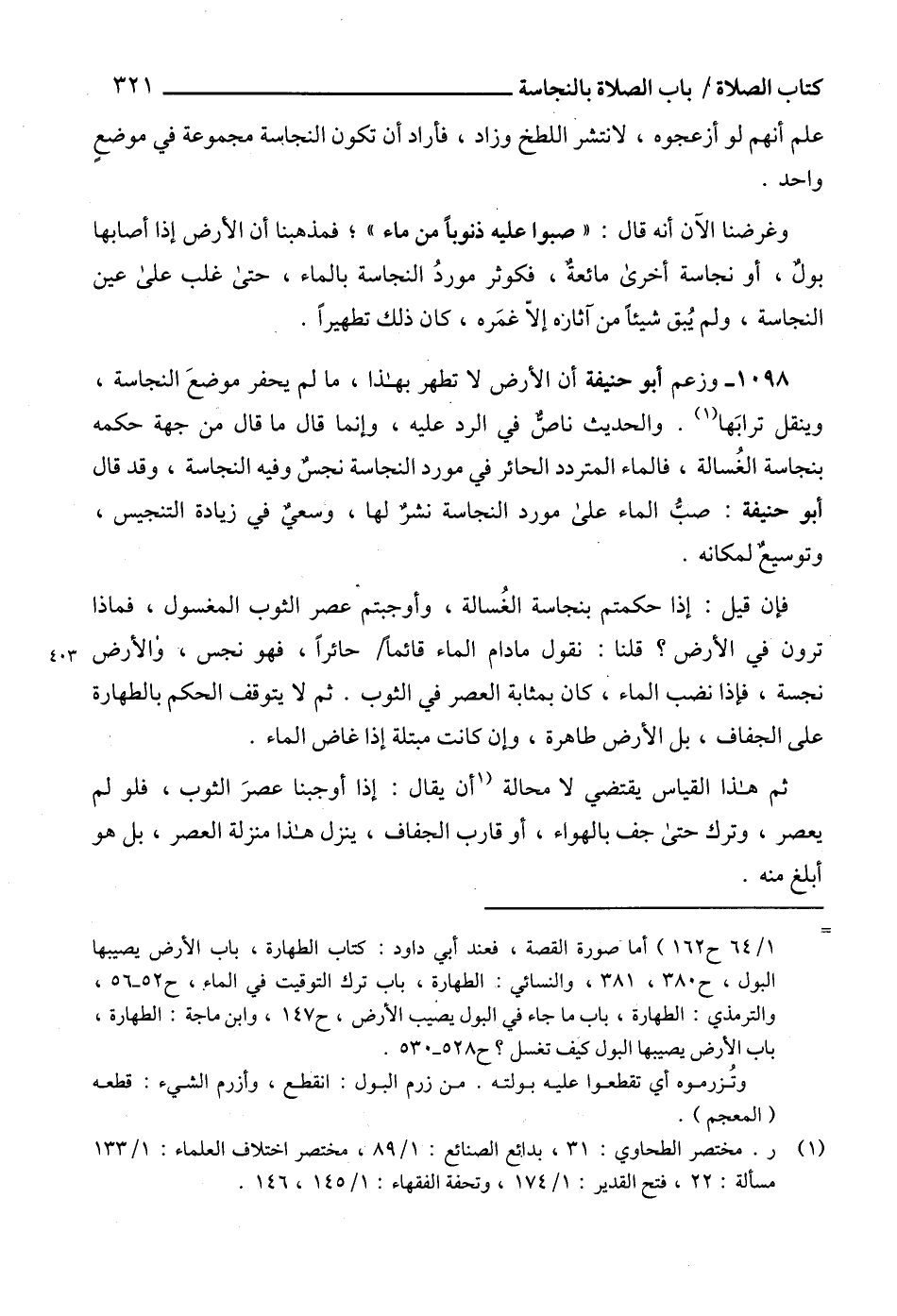 (1) ر. مختصر الطحاوي: 31، بدائع الصنائع: 1/ 89، مختصر اختلاف العلماء: 1/ 133 مسألة: 22، فتح القدير: 1/ 174، وتحفة الفقهاء: 1/ 145، 146.