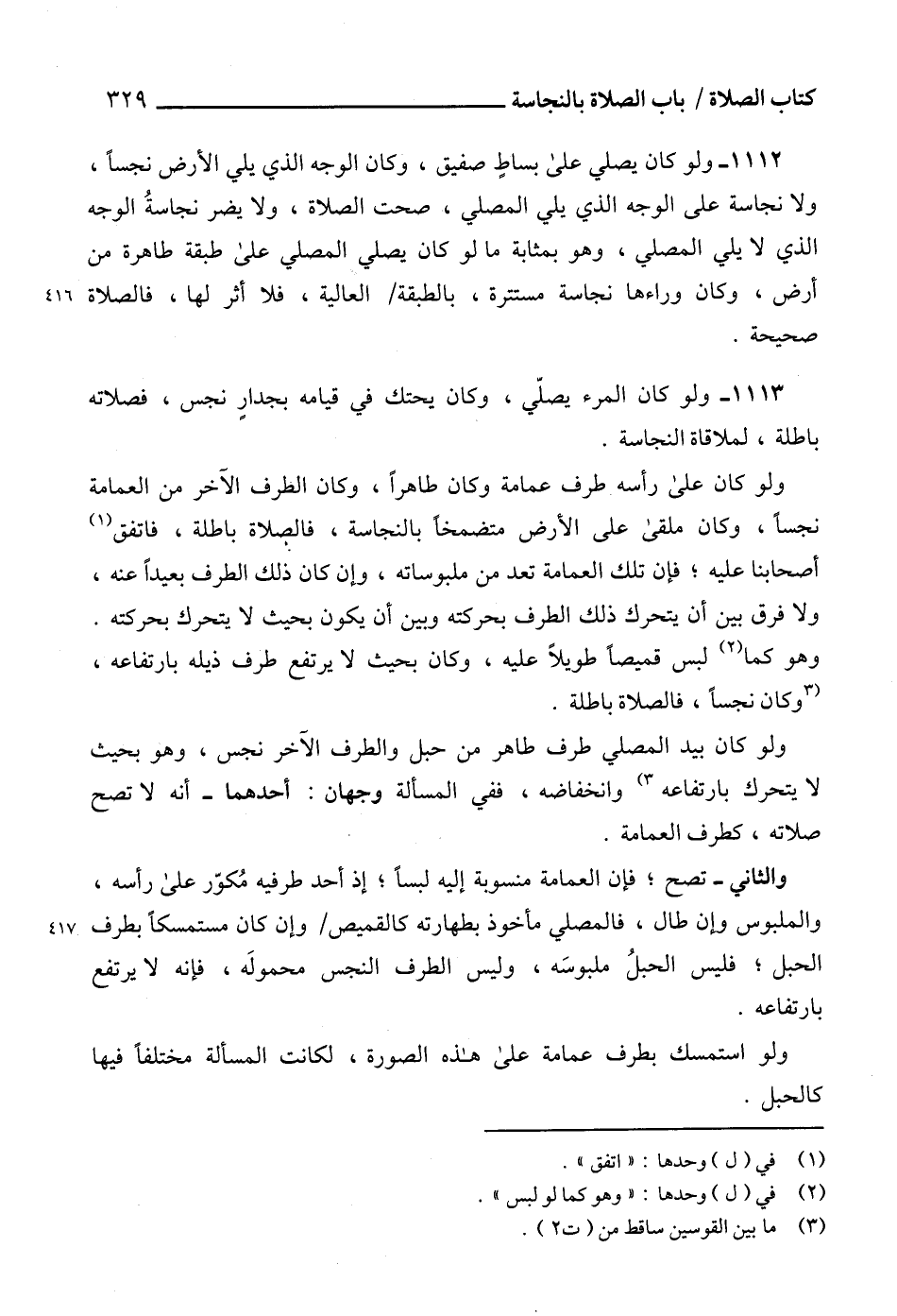 1112 - ولو كان يصلي على بساطٍ صفيق، وكان الوجه الذي يلي الأرض نجساً، ولا نجاسة على الوجه الذي يلي المصلي، صحت الصلاة، ولا يضر نجاسةُ الوجه الذي لا يلي المصلي، وهو بمثابة ما لو كان يصلي المصلي على طبقة طاهرة من أرض، وكان وراءها نجاسة مستترة، بالطبقة العالية، فلا أثر لها، فالصلاة صحيحة.