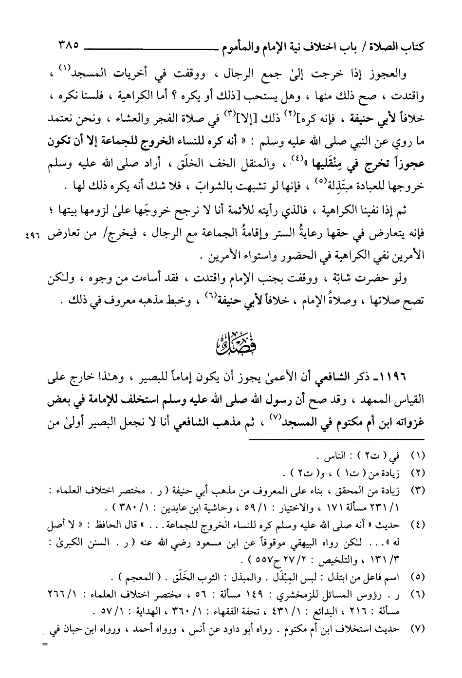 (6) ر. رؤوس المسائل للزمخشري: 149 مسألة: 56، مختصر اختلاف العلماء: 1/ 266 مسألة: 216، البدائع: 1/ 431، تحفة الفقهاء: 1/ 360، الهداية: 1/ 57.