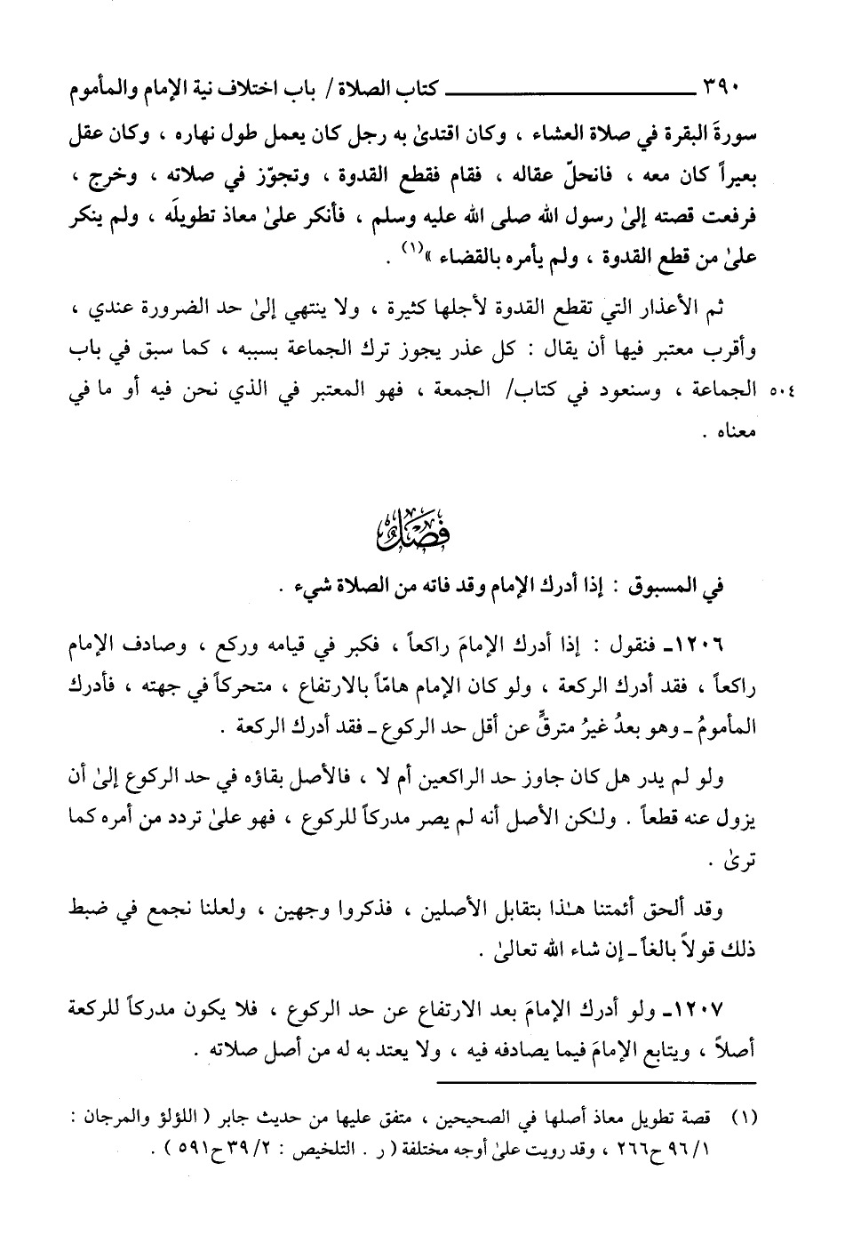 (1) قصة تطويل معاذ أصلها في الصحيحين، متفق عليها من حديث جابر (اللؤلؤ والمرجان: 1/ 96 ح 266، وقد رويت على أوجه مختلفة (ر. التلخيص: 2/ 39 ح 591).