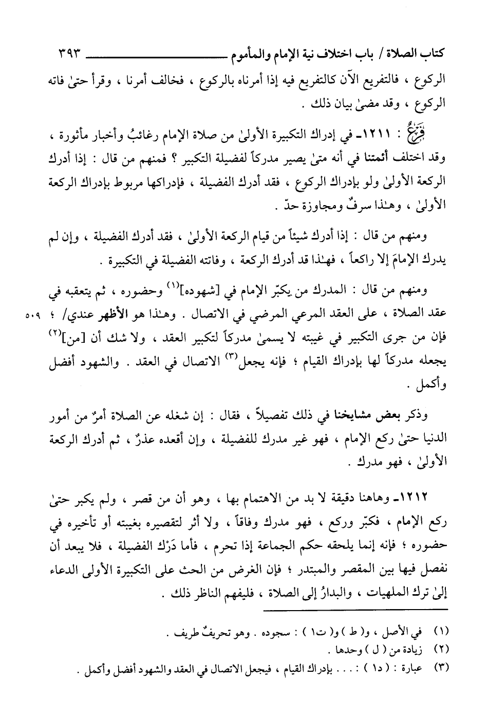 1211 - في إدراك التكبيرة الأولى من صلاة الإمام رغائبُ وأخبار مأثورة، وقد اختلف أئمتنا في أنه متى يصير مدركاً لفضيلة التكبير؟ فمنهم من قال: إذا أدرك الركعة الأولى ولو بإدراك الركوع، فقد أدرك الفضيلة، فإدراكها مربوط بإدراك الركعة الأولى، وهذا سرفٌ ومجاوزة حدّ.