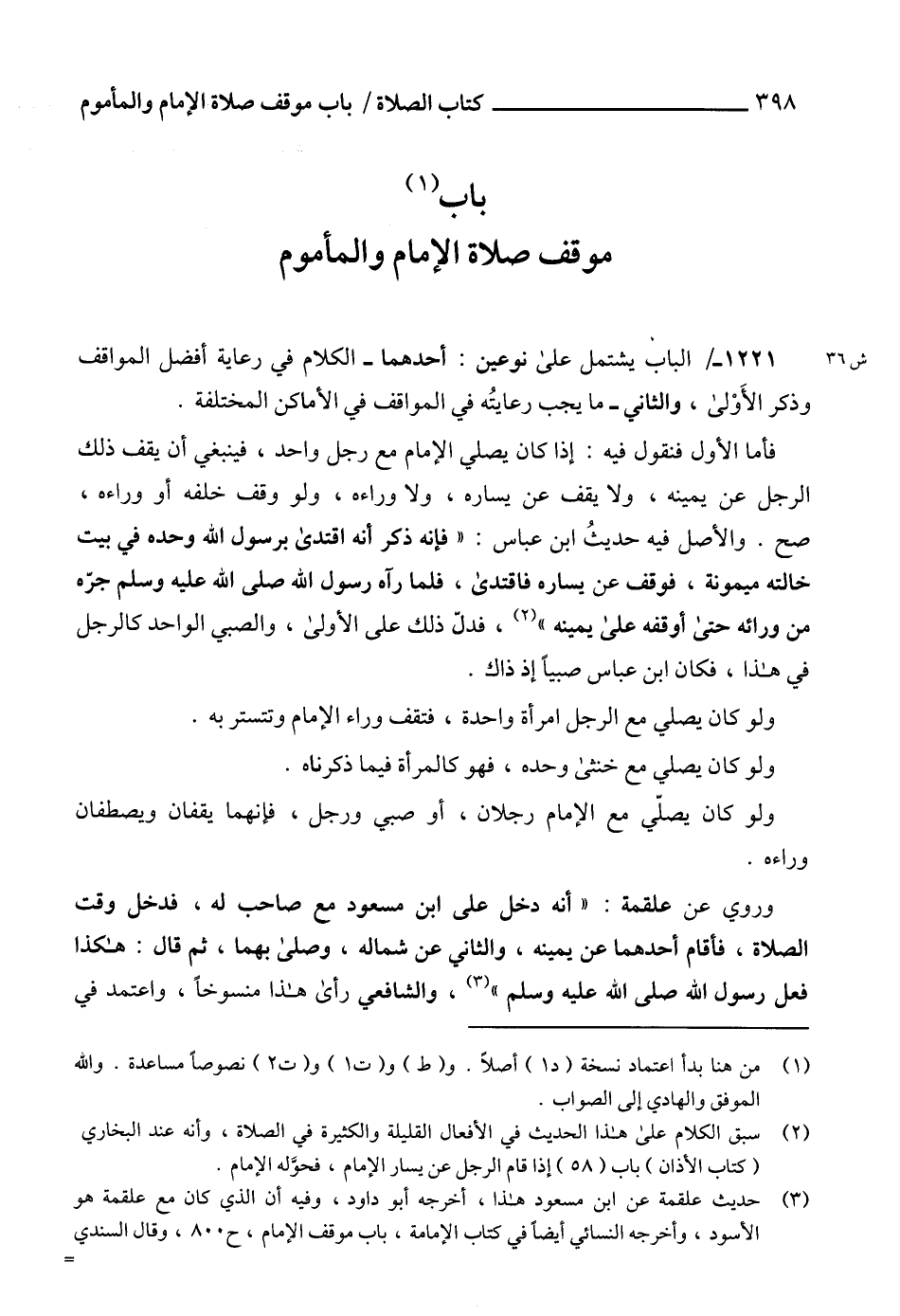 باب (1) موقف صلاة الإمام والمأموم