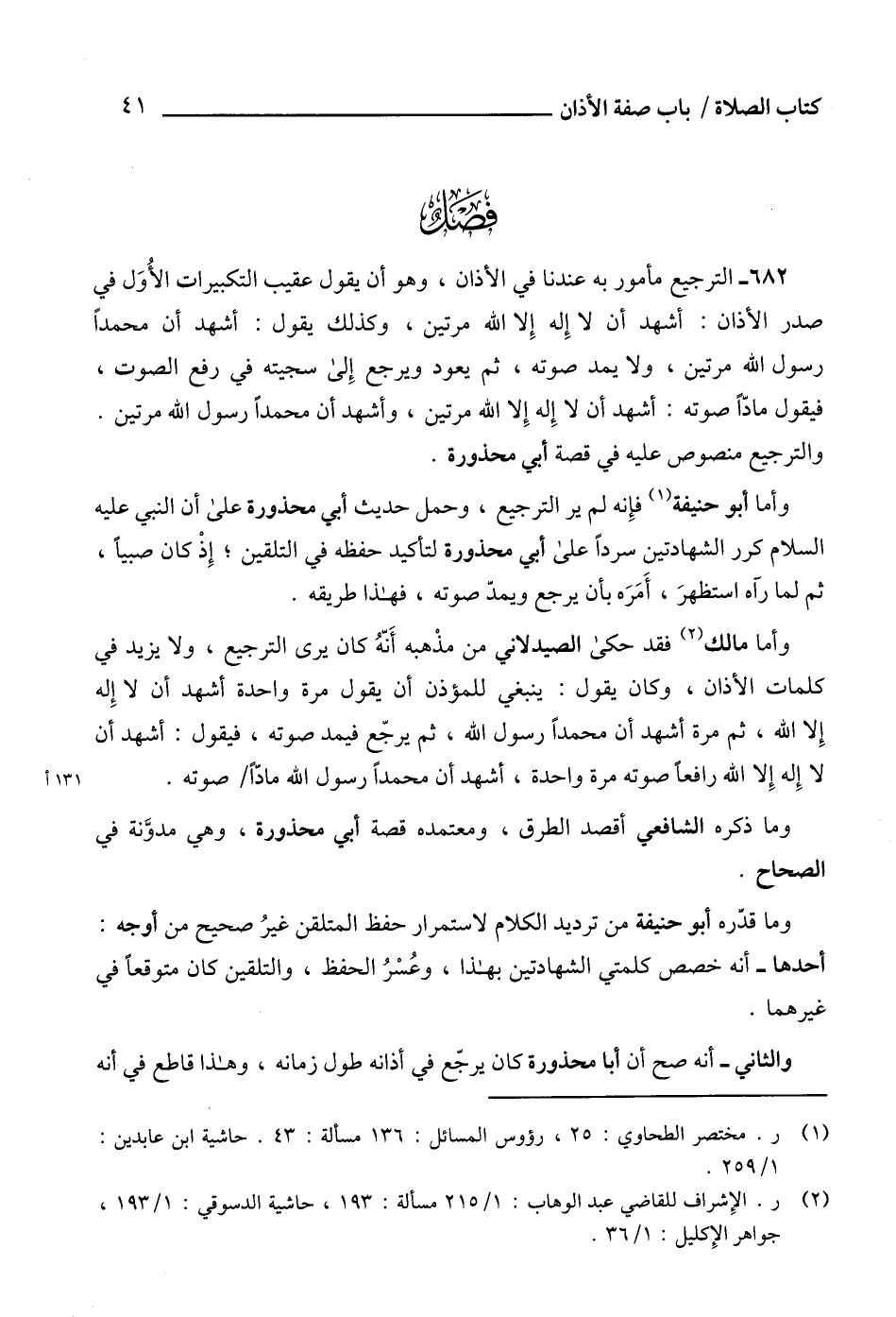 (¬1) ر. مختصر الطحاوي: 25، رؤوس المسائل: 136 مسألة: 43. حاشية ابن عابدين: 1/ 259.