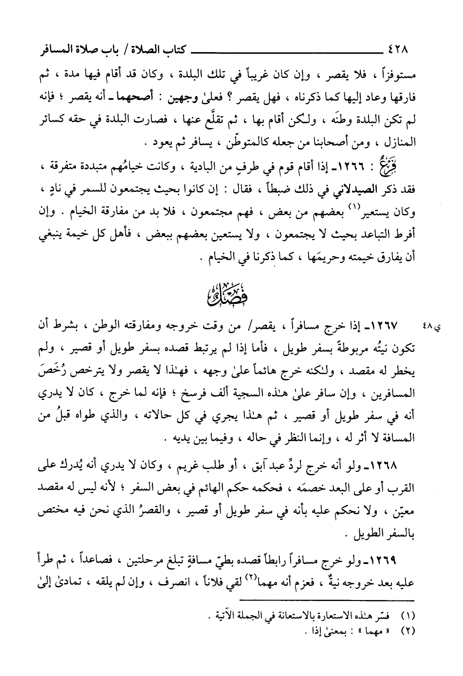 1268 - ولو أنه خرج لردِّ عبد آبق، أو طلب غريم، وكان لا يدري أنه يُدرك على القرب أو على البعد خصمَه، فحكمه حكم الهائم في بعض السفر، لأنه ليس له مقصد معيّن، ولا نحكم عليه بأنه في سفر طويل أو قصير، والقصرُ الذي نحن فيه مختص بالسفر الطويل.