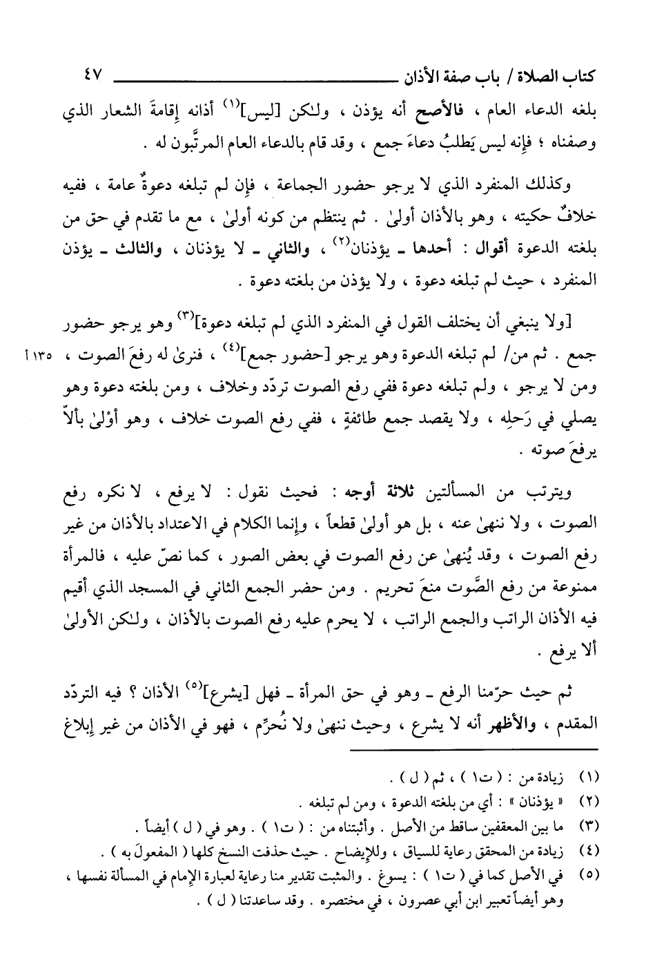 ويترتب من المسألتين ثلاثة أوجه: فحيث نقول: لا يرفع، لا نكره رفع الصوت، ولا ننهى عنه، بل هو أولى قطعاً، وإِنما الكلام في الاعتداد بالأذان من غير رفع الصوت، وقد يُنهى عن رفع الصوت في بعض الصور، كما نصّ عليه، فالمرأة ممنوعة من رفع الصوت منعَ تحريم. ومن حضر الجمع الثاني في المسجد الذي أقيم فيه الأذان الراتب والجمع الراتب، لا يحرم عليه رفع الصوت بالأذان، ولكن الأولى ألا يرفع.