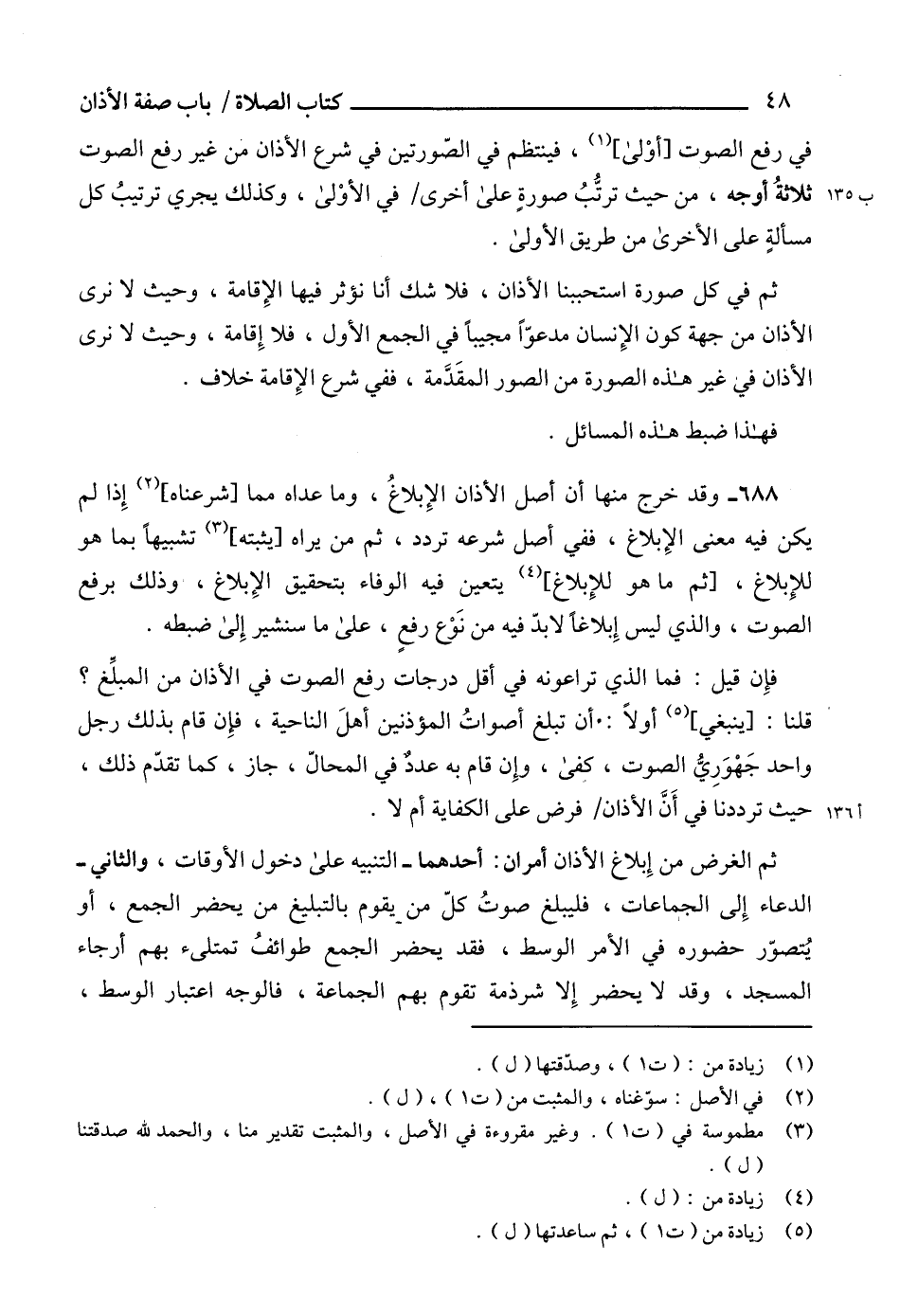 688 - وقد خرج منها أن أصل الأذان الإِبلاغ، وما عداه مما [شرعناه] (¬2) إِذا لم يكن فيه معنى الإِبلاغ، ففي أصل شرعه تردد، ثم من يراه [يثبته] (¬3) تشبيهاً بما هو للإِبلاع، [ثم ما هو للإِبلاغ] (¬4) يتعين فيه الوفاء بتحقيق الإِبلاع، وذلك برفع الصوت، والذي ليس إِبلاغاً لابدّ فيه من نَوْع رفعٍ، على ما سنشير إِلى ضبطه.