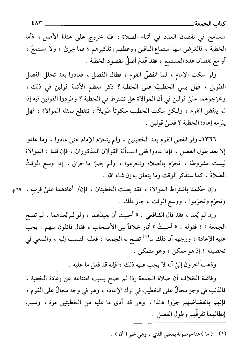 1366 - ولو انفض القوم بعد الخطبتين، ولم يتحرّم الإمام حتى عادوا، وما عادوا إلا بعد طول الفصل، فإذا عادوا ففي المسألة القولان المذكوران، فإن قلنا: الموالاة ليست مشروطة، تحرّم بالصلاة وتحرموا، ولم يضرّ ما جرى، إذا وسع الوقتُ الصلاةَ، كما سنذكر الوقت وما يتعلق به إن شاء الله.