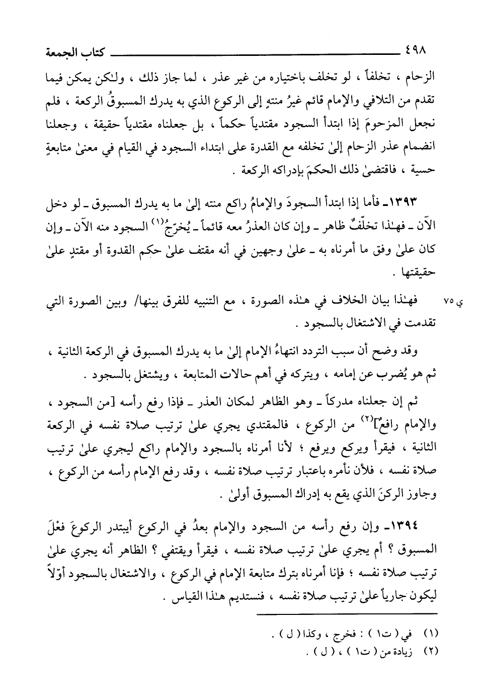 1393 - فأما إذا ابتدأ السجودَ والإمامُ راكع منته إلى ما به يدرك المسبوق -لو دخل الآن- فهذا تخلّف ظاهر -وإن كان العذرُ معه قائماً- يُخرّجُ (1) السجود منه الآن -وإن كان على وفق ما أمرناه به- على وجهين في أنه مقتف على حكم القدوة أو مقتدٍ على حقيقتها.