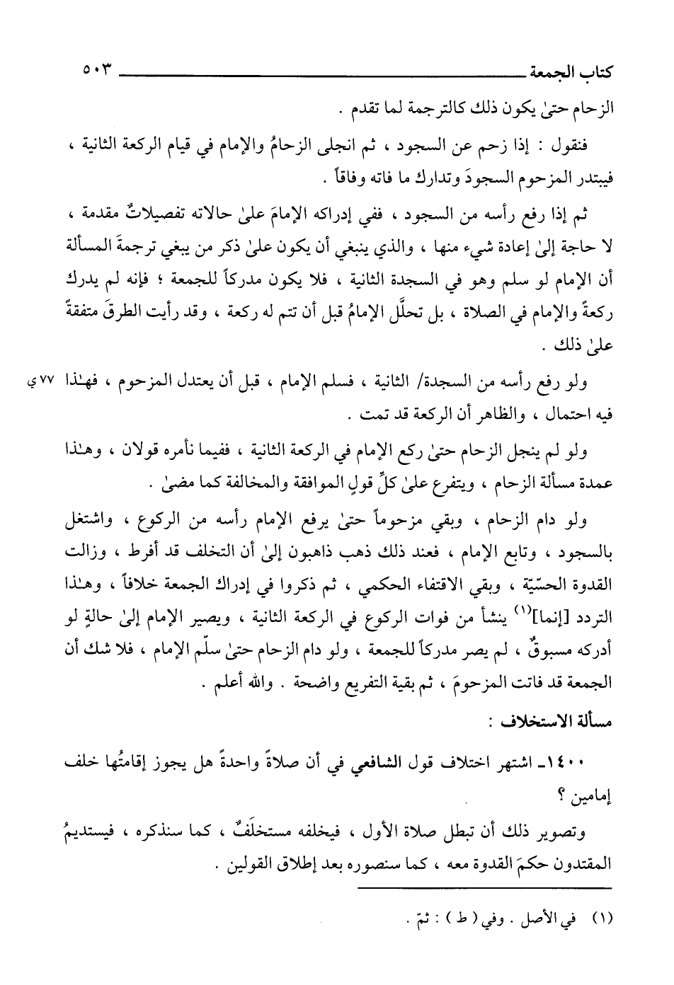 1400 - اشتهر اختلاف قول الشافعي في أن صلاةً واحدةً هل يجوز إقامتُها خلف إمامين؟