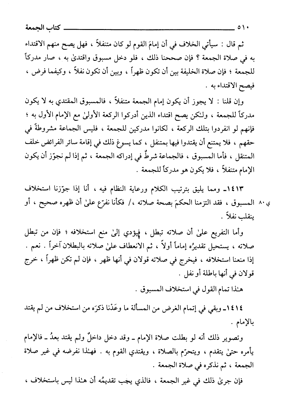 1414 - وبقي في إتمام الغرض من المسألة ما وعَدْنا ذكرَه من استخلاف من لم يقتد بالإمام.
