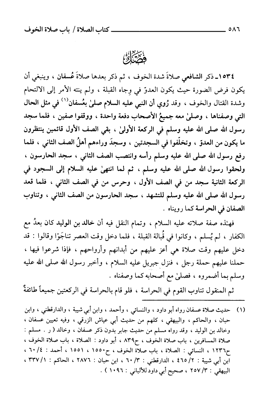 (1) حديث صلاة عسفان رواه أبو داود، والنسائي، وأحمد، وابن أبي شيبة، والدارقطني، وابن حبان، والحاكم، والبيهقي، كلهم من حديث أبي عياش الزرقي، وفيه تعيين عسفان، وخالد بن الوليد، وقد رواه مسلم من حديث جابر بدون ذكر عسفان، وخالد (ر. مسلم: صلاة المسافرين، باب صلاة الخوف، ح 839، أبو داود: الصلاة، باب صلاة الخوف، ح 1236، النسائي: الصلاة، باب صلاة الخوف، ح 1550، 1551، أحمد: 4/ 60، ابن أبي شيبة: 2/ 465، الدارقطني: 3/ 60، ابن حبان: 2876، الحاكم: 1/ 337، البيهقي: 3/ 257، صحيح أبي داود للألباني: 1096).