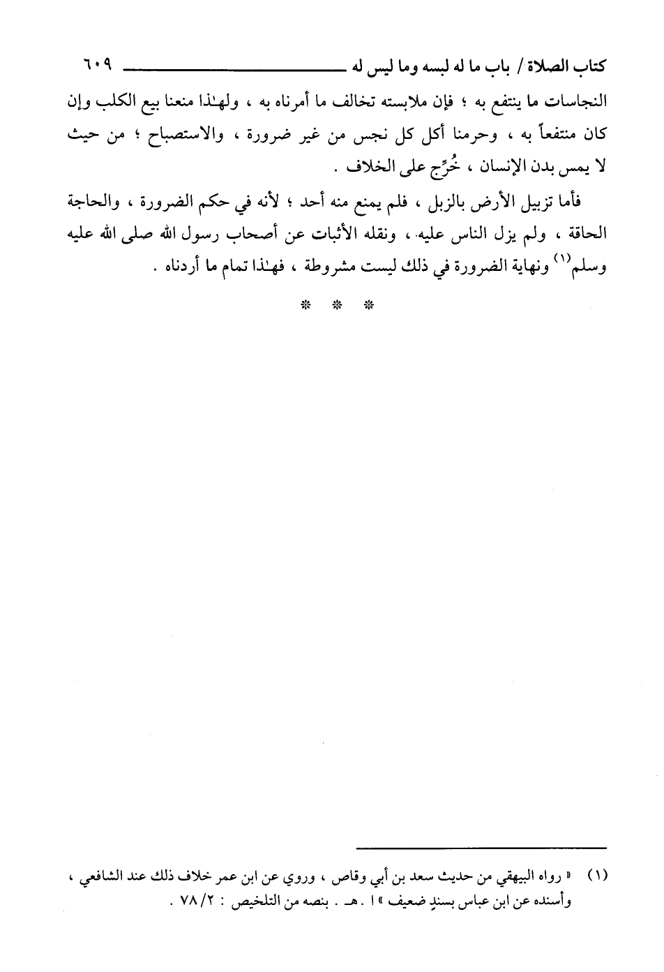 (1) "رواه البيهقي من حديث سعد بن أبي وقاص، وروي عن ابن عمر خلاف ذلك عند الشافعي، وأسنده عن ابن عباس بسندٍ ضعيف" ا. هـ. بنصه من التلخيص: 2/ 78.