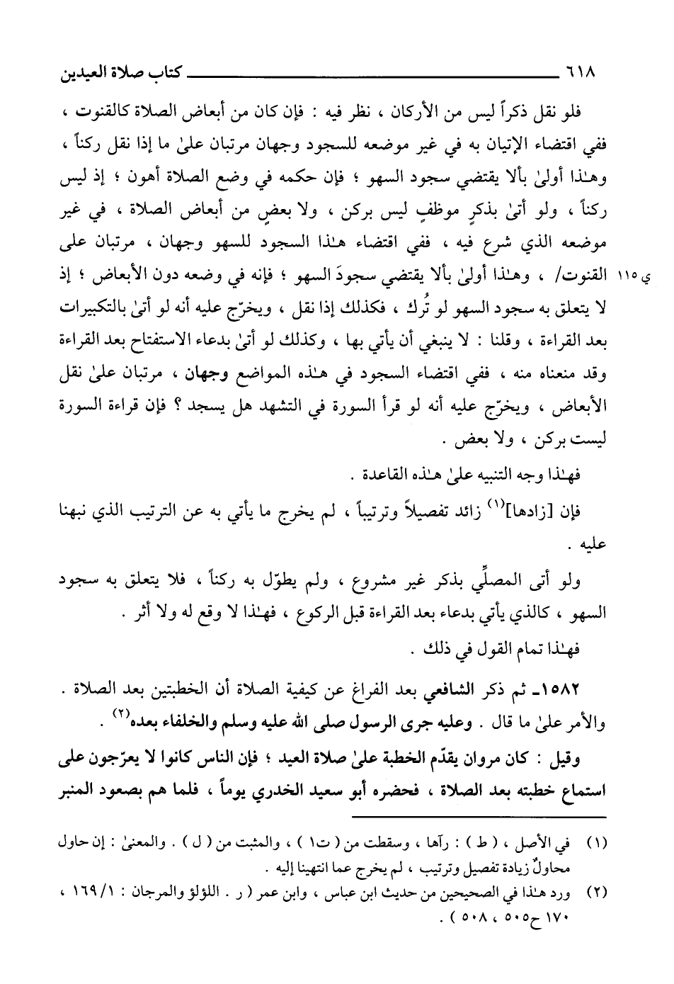 1582 - ثم ذكر الشافعي بعد الفراغ عن كيفية الصلاة أن الخطبتين بعد الصلاة.