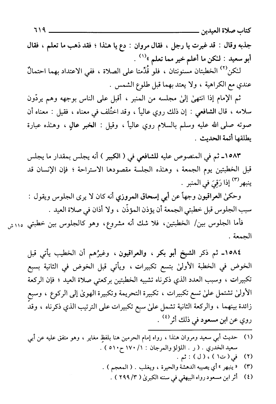 (1) حديث أبي سعيد ومروان هذا، رواه إمام الحرمين هنا بلفظ مغاير، وهو متفق عليه عن أبي سعيد الخدري. (ر. اللؤلؤ والمرجان: 1/ 170 ح 510).
