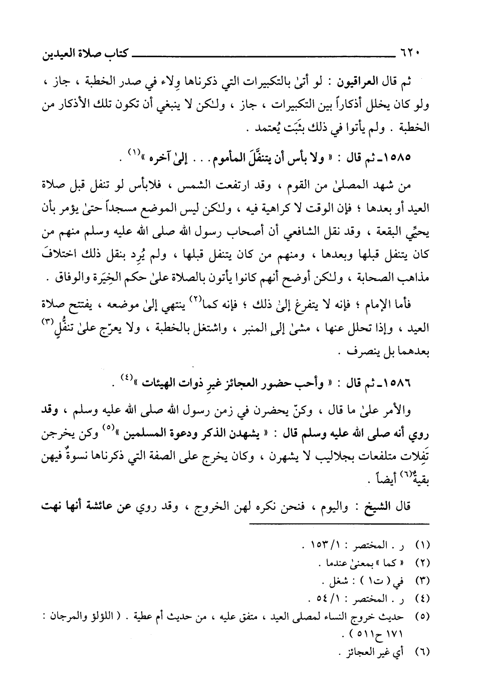 1586 - ثم قال: "وأحب حضور العجائز غيرِ ذوات الهيئات" (4).