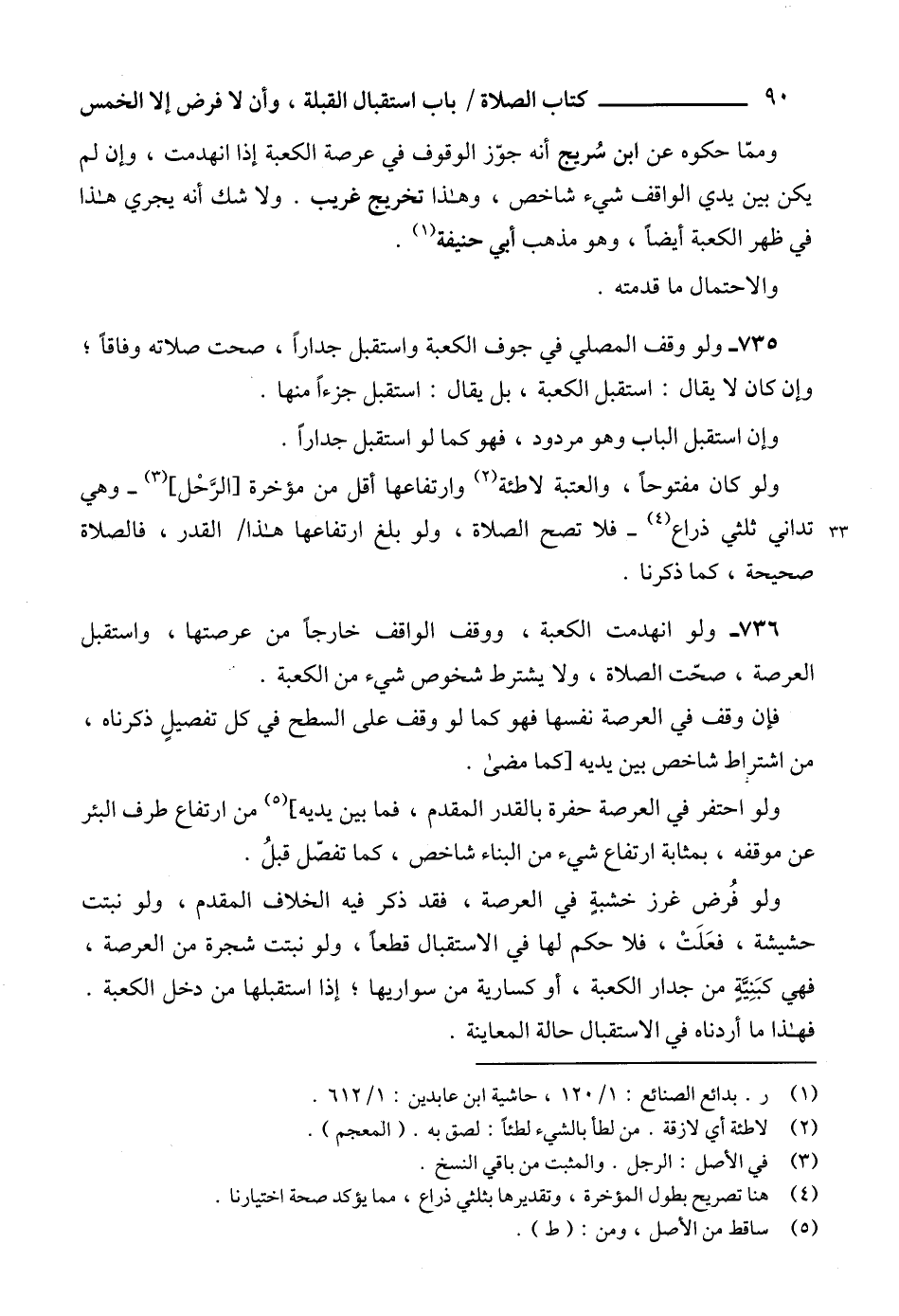 736 - ولو انهدمت الكعبة، ووقف الواقف خارجاً من عرصتها، واستقبل العرصة، صحّت الصلاة، ولا يشترط شخوص شيء من الكعبة.