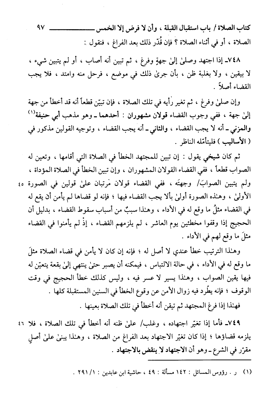 (¬1) ر. رؤوس المسائل: 142 مسألة: 49، حاشية ابن عابدين: 1/ 291.