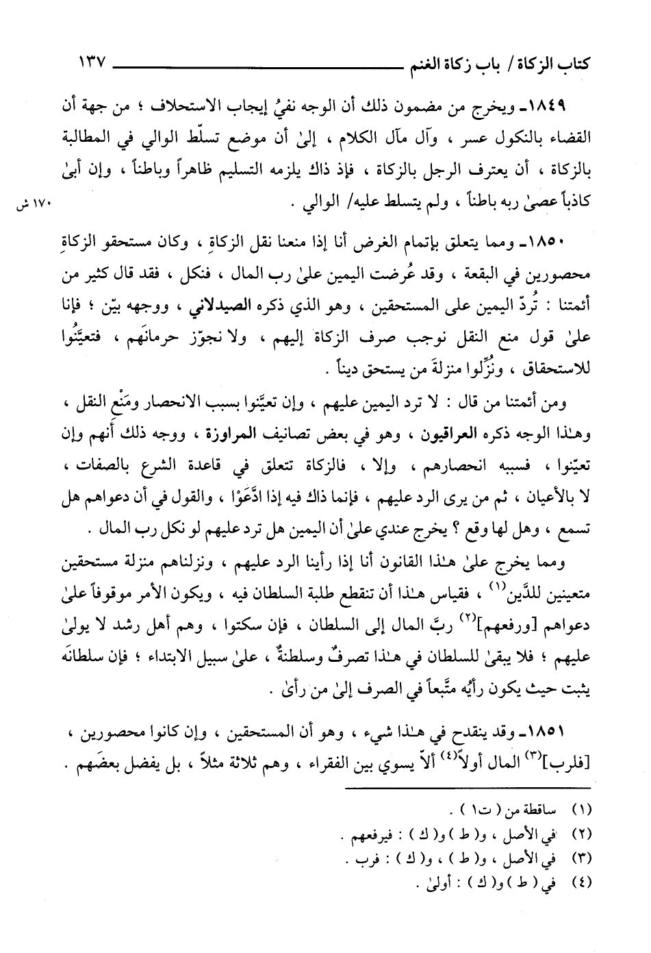 1851 - وقد ينقدح في هذا شيء، وهو أن المستحقين، وإن كانوا محصورين، [فلرب] (3) المال أولاً (4) ألاّ يسوي بين الفقراء، وهم ثلاثة مثلاً، بل يفضل بعضَهم.