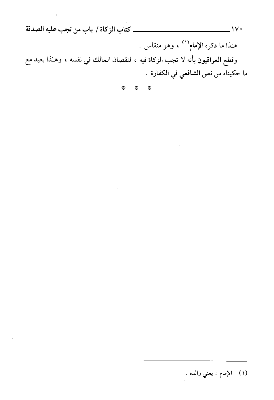 وقطع العراقيون بأنه لا تجب الزكاة فيه، لنقصان المالك في نفسه، وهذا بعيد مع ما حكيناه من نص الشافعي في الكفارة.