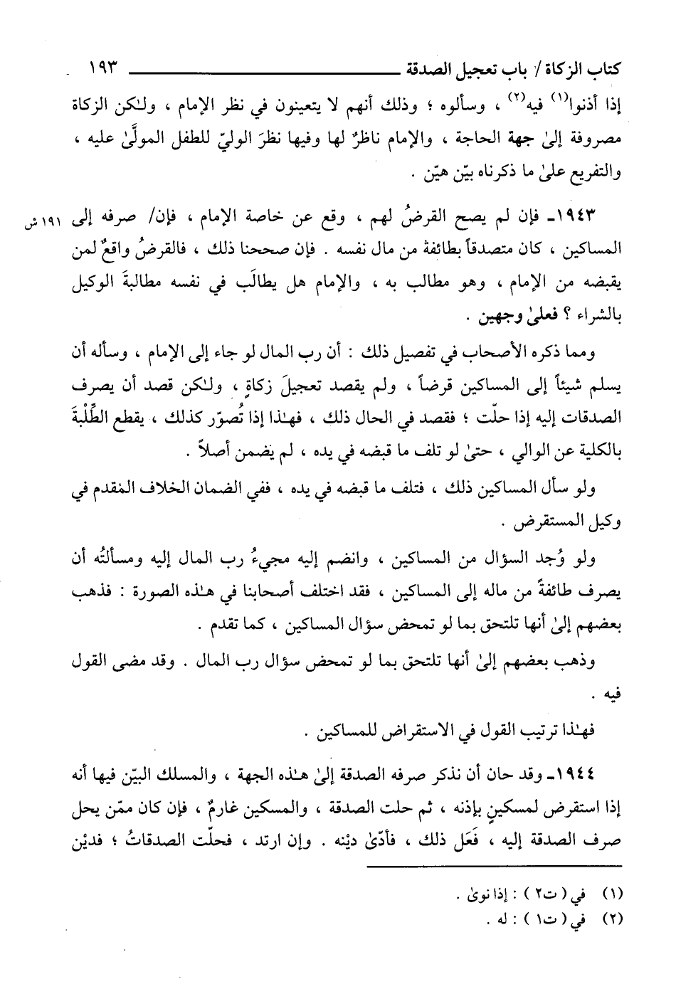 1944 - وقد حان أن نذكر صرفه الصدقة إلى هذه الجهة، والمسلك البيّن فيها أنه إذا استقرض لمسكينٍ بإذنه، ثم حلت الصدقة، والمسكين غارمٌ، فإن كان ممّن يحل صرف الصدقة إليه، فَعَل ذلك، فأدّى ديْنه. وإن ارتد، فحلّت الصدقاتُ؛ فديْن
