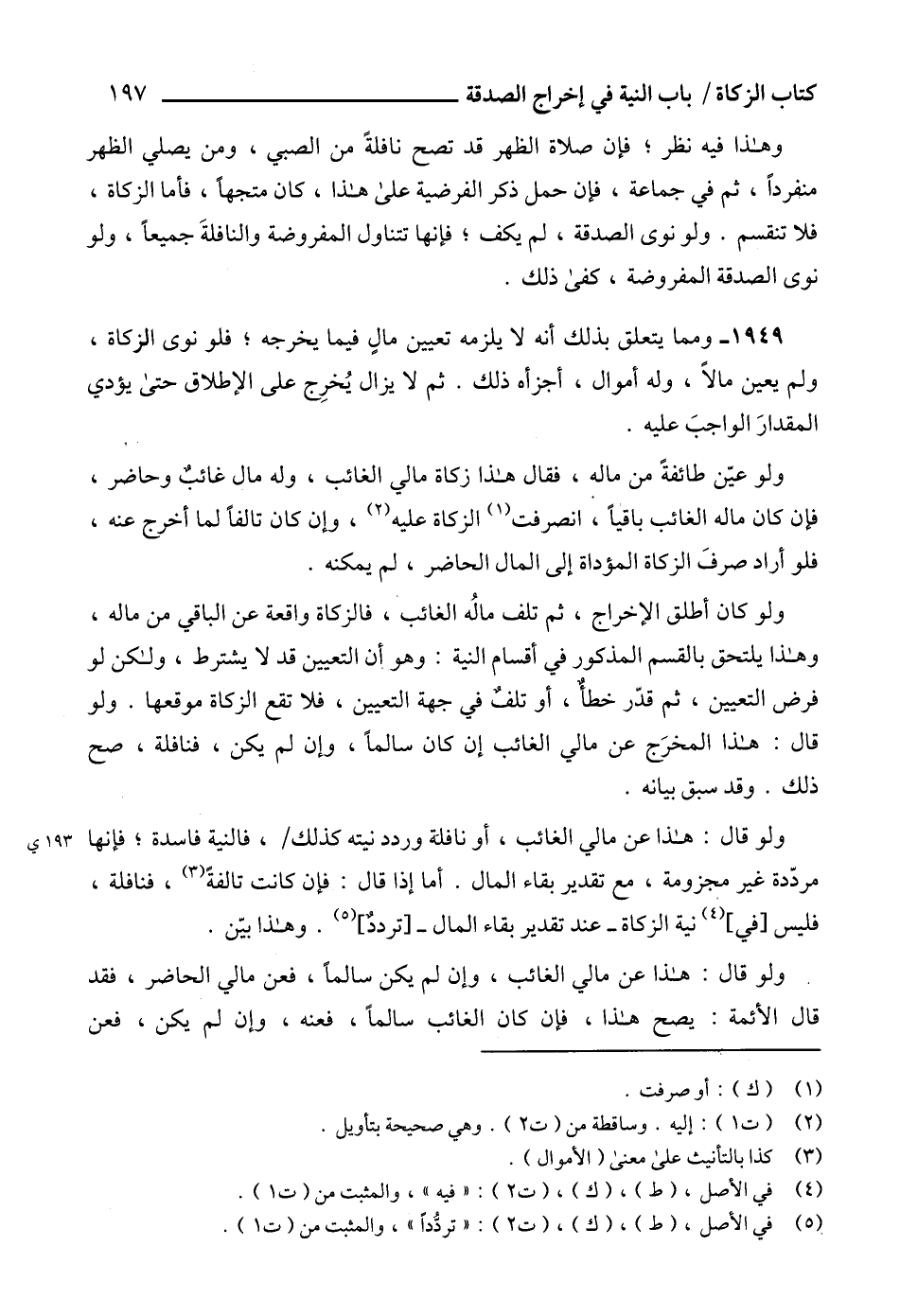 ولو قال: هذا عن مالي الغائب، أو نافلة وردد نيته كذلك، فالنية فاسدة؛ فإنها مرددة غير مجزومة، مع تقدير بقاء المال. أما إذا قال: فإن كانت تالفةً (3)، فنافلة، فليس [في] (4) نية الزكاة -عند تقدير بقاء المال-[ترددٌ] (5). وهذا بيّن.