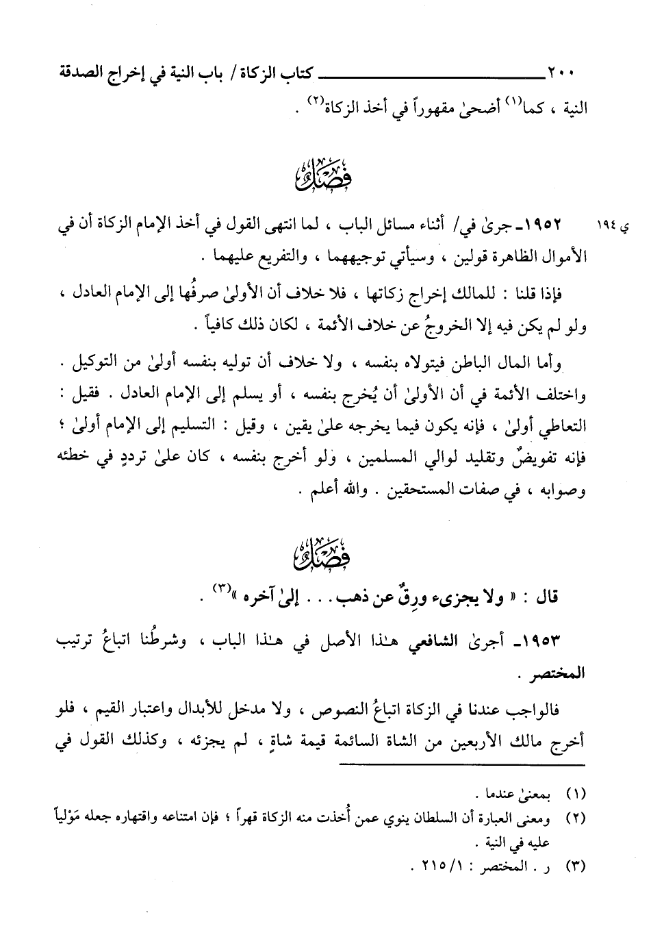 1952 - جرى في أثناء مسائل الباب، لما انتهى القول في أخذ الإمام الزكاة أن في الأموال الظاهرة قولين، وسيأتي توجيههما، والتفريع عليهما.