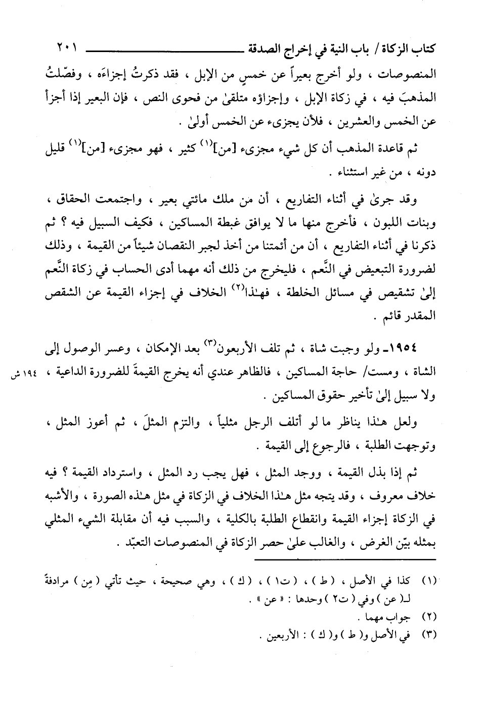 1954 - ولو وجبت شاة، ثم تلف الأربعون (3) بعد الإمكان، وعسر الوصول إلى الشاة، ومست حاجة المساكين، فالظاهر عندي أنه يخرج القيمةَ للضرورة الداعية، ولا سبيل إلى تأخير حقوق المساكين.