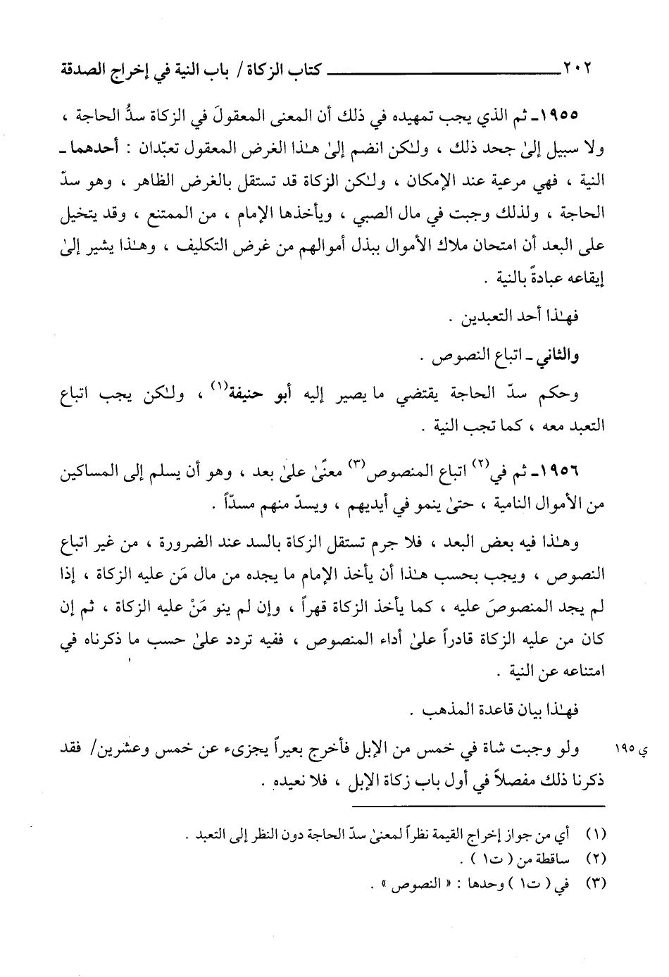 1956 - ثم في (2) اتباع المنصوص (3) معنًى على بعد، وهو أن يسلم إلى المساكين من الأموال النامية، حتى ينمو في أيديهم، ويسدّ منهم مسدّاً.