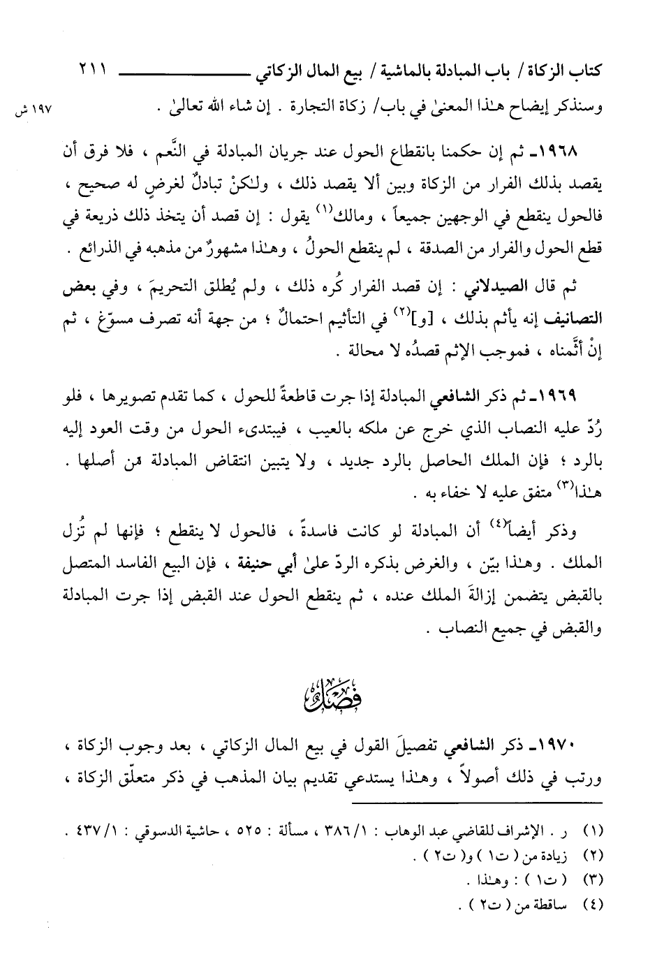 1970 - ذكر الشافعي تفصيلَ القول في بيع المال الزكاتي، بعد وجوب الزكاة، ورتب في ذلك أصولاً، وهذا يستدعي تقديم بيان المذهب في ذكر متعلّق الزكاة،