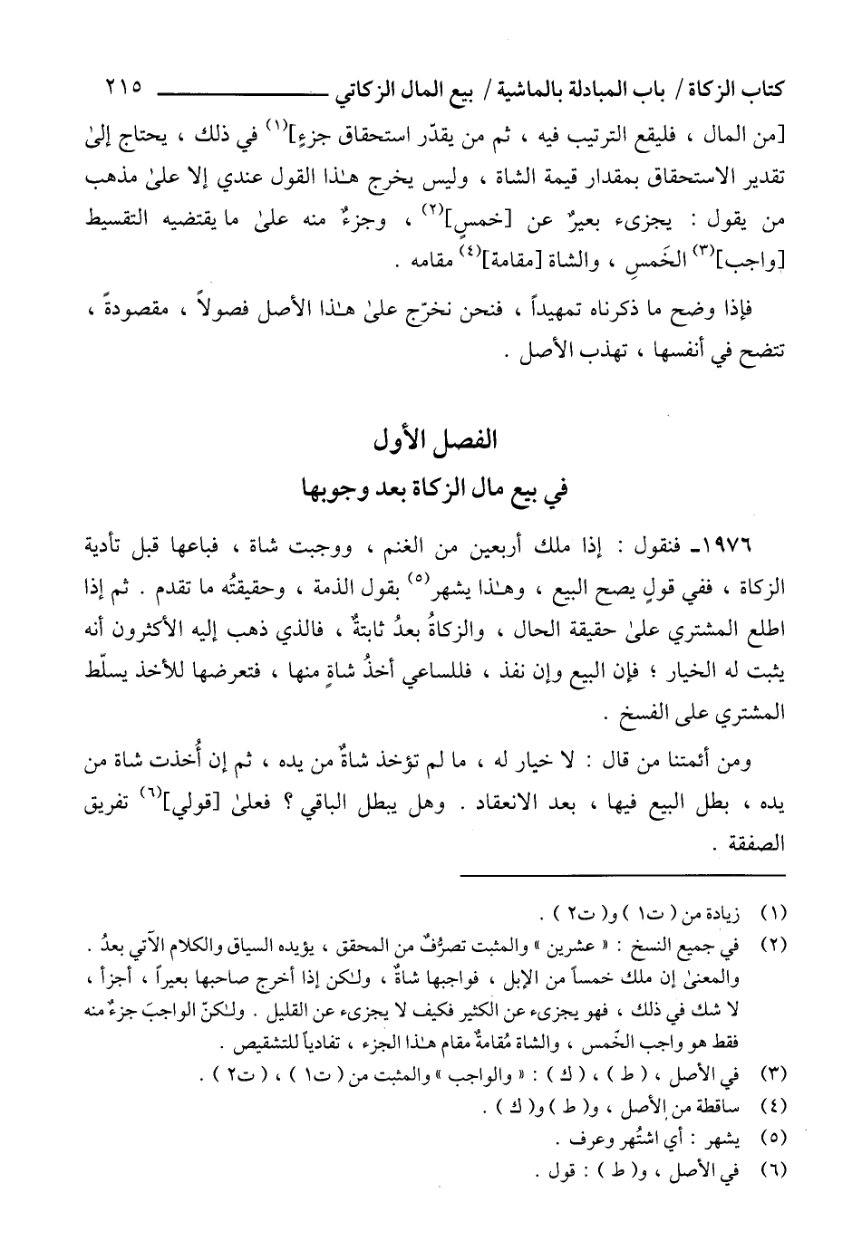 1976 - فنقول: إذا ملك أربعين من الغنم، ووجبت شاة، فباعها قبل تأدية الزكاة، ففي قولٍ يصح البيع، وهذا يشهر (5) بقول الذمة، وحقيقتُه ما تقدم. ثم إذا اطلع المشتري على حقيقة الحال، والزكاةُ بعدُ ثابتةٌ، فالذي ذهب إليه الأكثرون أنه يثبت له الخيار؛ فإن البيع وإن نفذ، فللساعي أخذُ شاةٍ منها، فتعرضها للأخذ يسلّط المشتري على الفسخ.