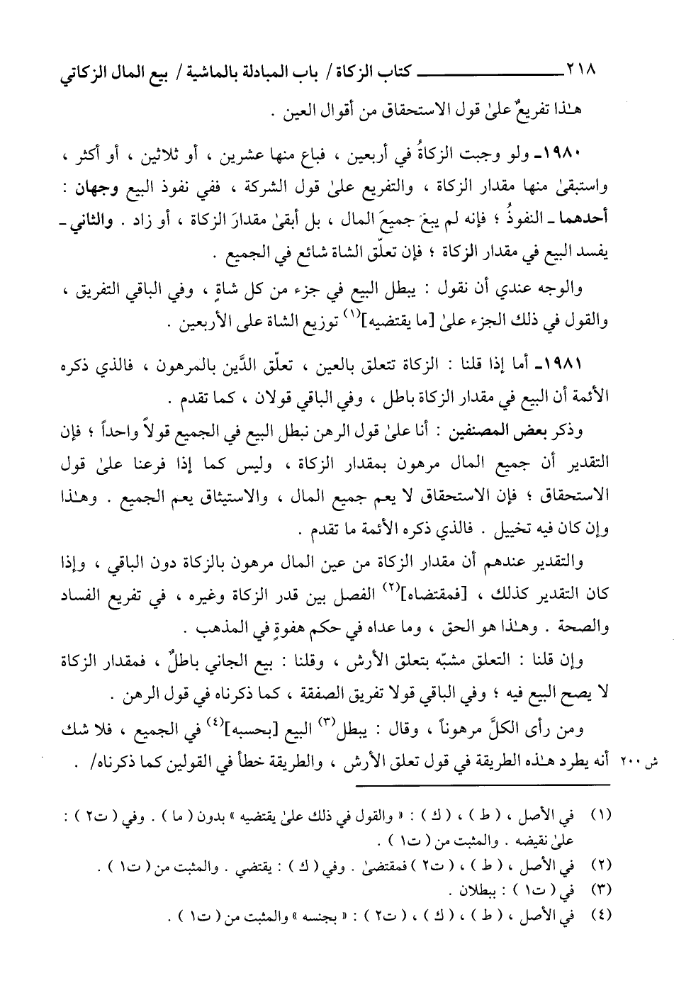 1981 - أما إذا قلنا: الزكاة تتعلق بالعين، تعلّق الدَّين بالمرهون، فالذي ذكره الأئمة أن البيع في مقدار الزكاة باطل، وفي الباقي قولان، كما تقدم.
