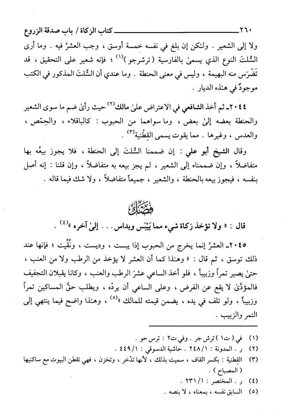 ولا إلى الشعير. ولكن إن بلغ في نفسه خمسة أوسق، وجب العشرُ فيه. وما أرى السُّلتَ النوع الذي يسمى بالفارسية (ترشرجو) (1)؛ فإنه شعير على التحقيق، قد تَضْرَس منه البهيمة، وليس في معنى الحنطة. وما عندي أن السُّلتَ المذكور في الكتب موجودٌ في هذه الديار.
