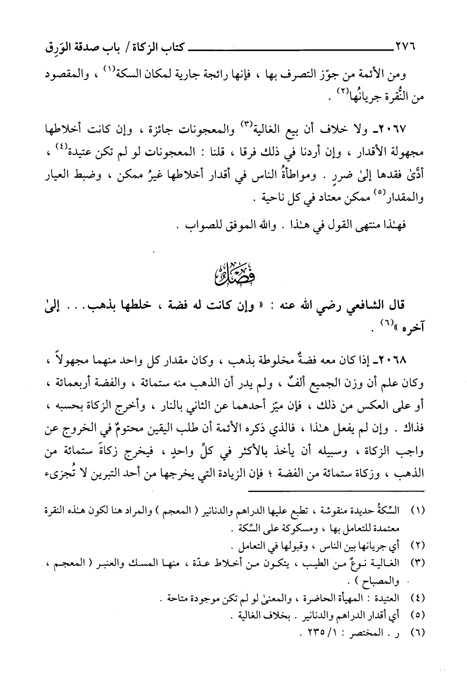 قال الشافعي رضي الله عنه: "وإن كانت له فضة، خلطها بذهب ... إلى آخره" (6).