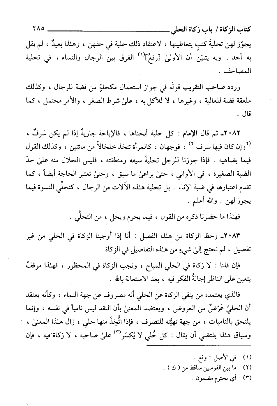 2083 - وحظ الزكاة من هذا الفصل: أنا إذا أوجبنا الزكاة في الحلي من غير تفصيل، لم نحتج إلى شيءٍ من هذه التفاصيل في الزكاة.