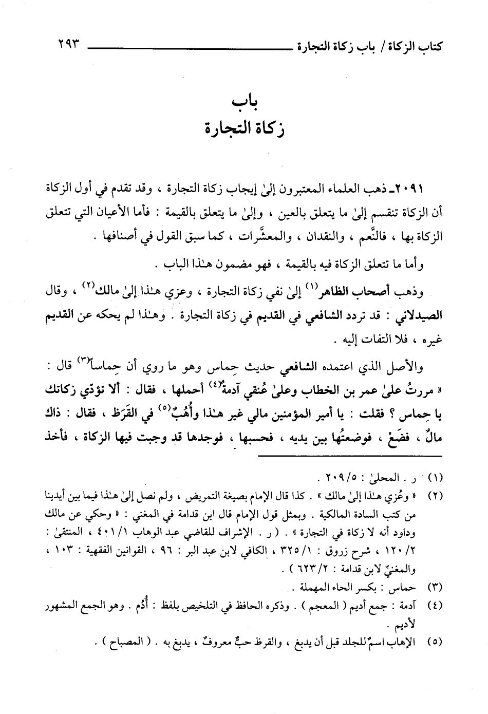 والأصل الذي اعتمده الشافعي حديث حِماس وهو ما روي أن حِماساً (3) قال: "مررتُ على عمر بن الخطاب وعلى عُنقي آدمه (4) أحملها، فقال: ألا تؤدّي زكاتك يا حِماس؟ فقلت: يا أمير المؤمنين مالي غير هذا وأُهُب (5) في القَرَظ، فقال: ذاك مال، فضَعْ، فوضعتُها بين يديه، فحسبها، فوجدها قد وجبت فيها الزكاة، فأخذ