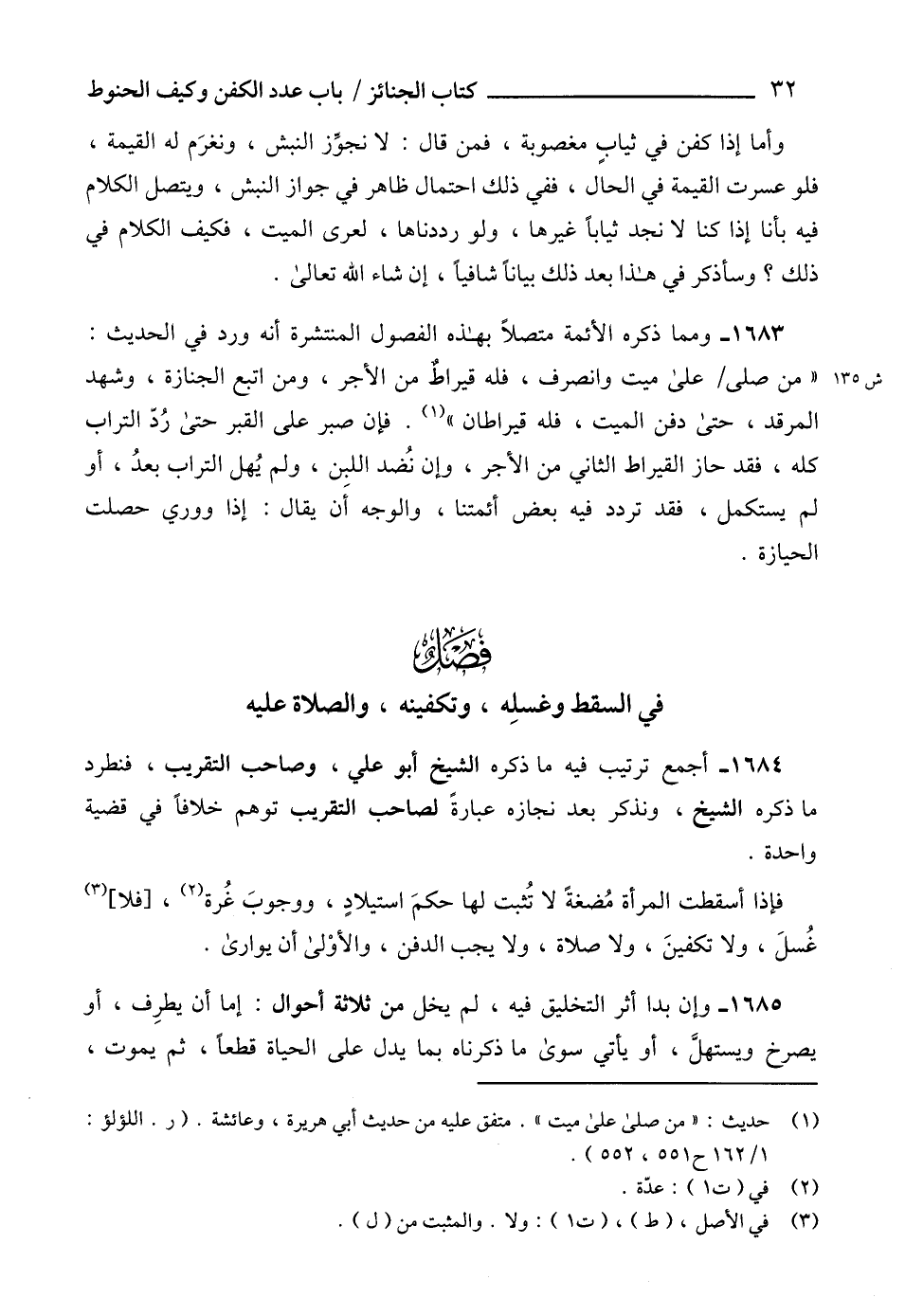 (1) حديث: "من صلى على ميت". متفق عليه من حديث أبي هريرة، وعائشة. (ر. اللؤلؤ: 1/ 162 ح 551، 552).