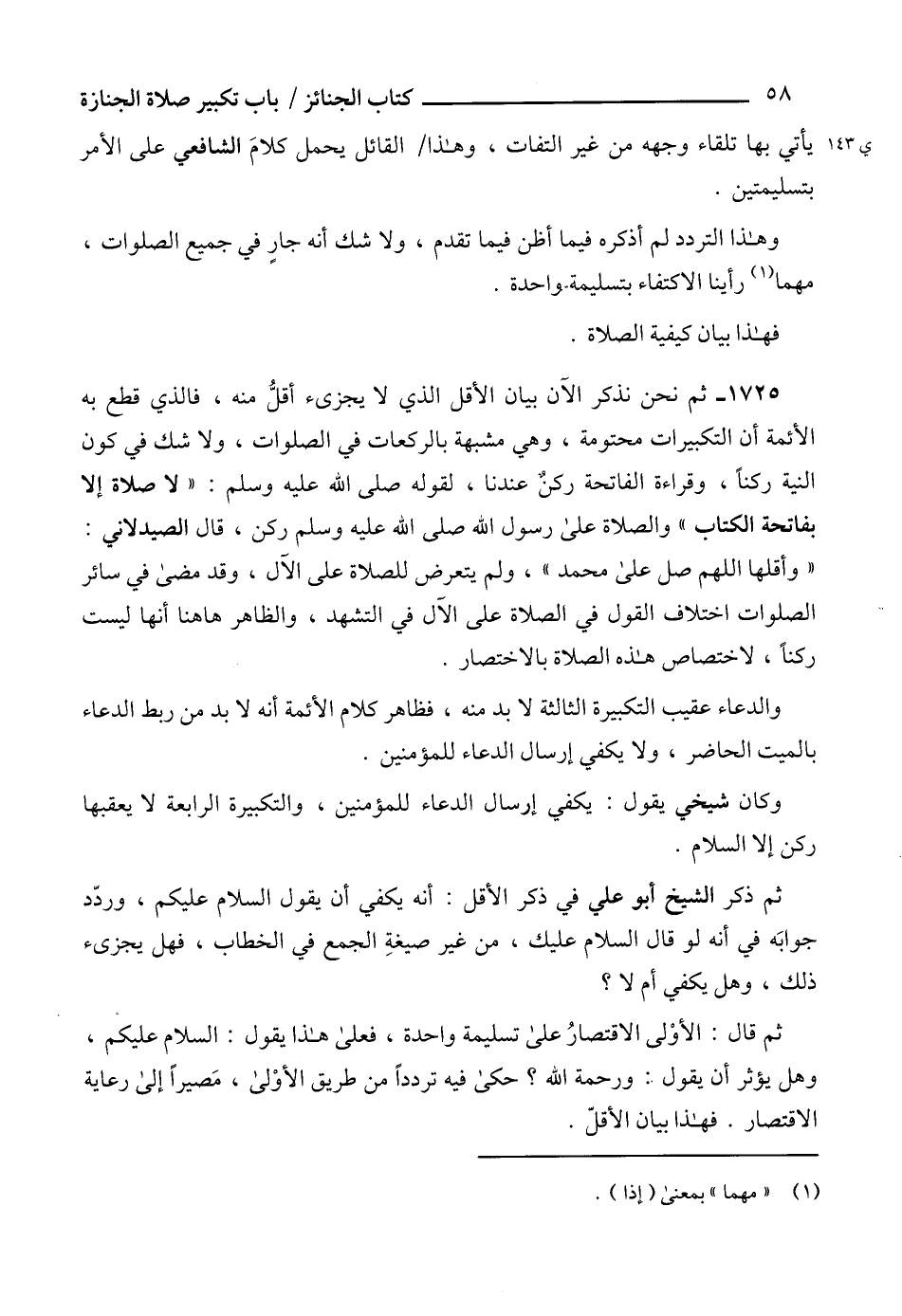 وكان شيخي يقول: يكفي إرسال الدعاء للمؤمنين، والتكبيرة الرابعة لا يعقبها ركن إلا السلام.