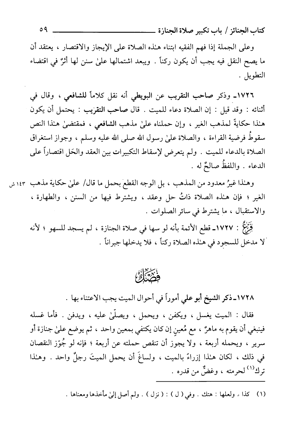 1726 - وذكر صاحب التقريب عن البويطي أنه نقل كلاماً للشافعي، وقال في أثنائه: وقد قيل: إن الصلاة دعاء للميت. قال صاحب التقريب: يحتمل أن يكون هذا حكايةً لمذهب الغير، وإن حملناه على مذهب الشافعي، فمقتضى هذا النص سقوطُ فرضية القراءة، والصلاة على رسول الله صلى الله عليه وسلم، وجواز استغراق الصلاة بالدعاء للميت. ولم يتعرض لإسقاط التكبيرات بين العقد والحَل اقتصاراً على الدعاء. واللفظُ صالح له.