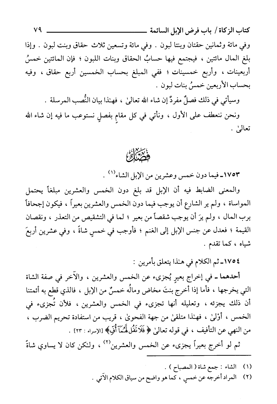 1753 - فيما دون خمس وعشرين من الإبل الشاء (1).