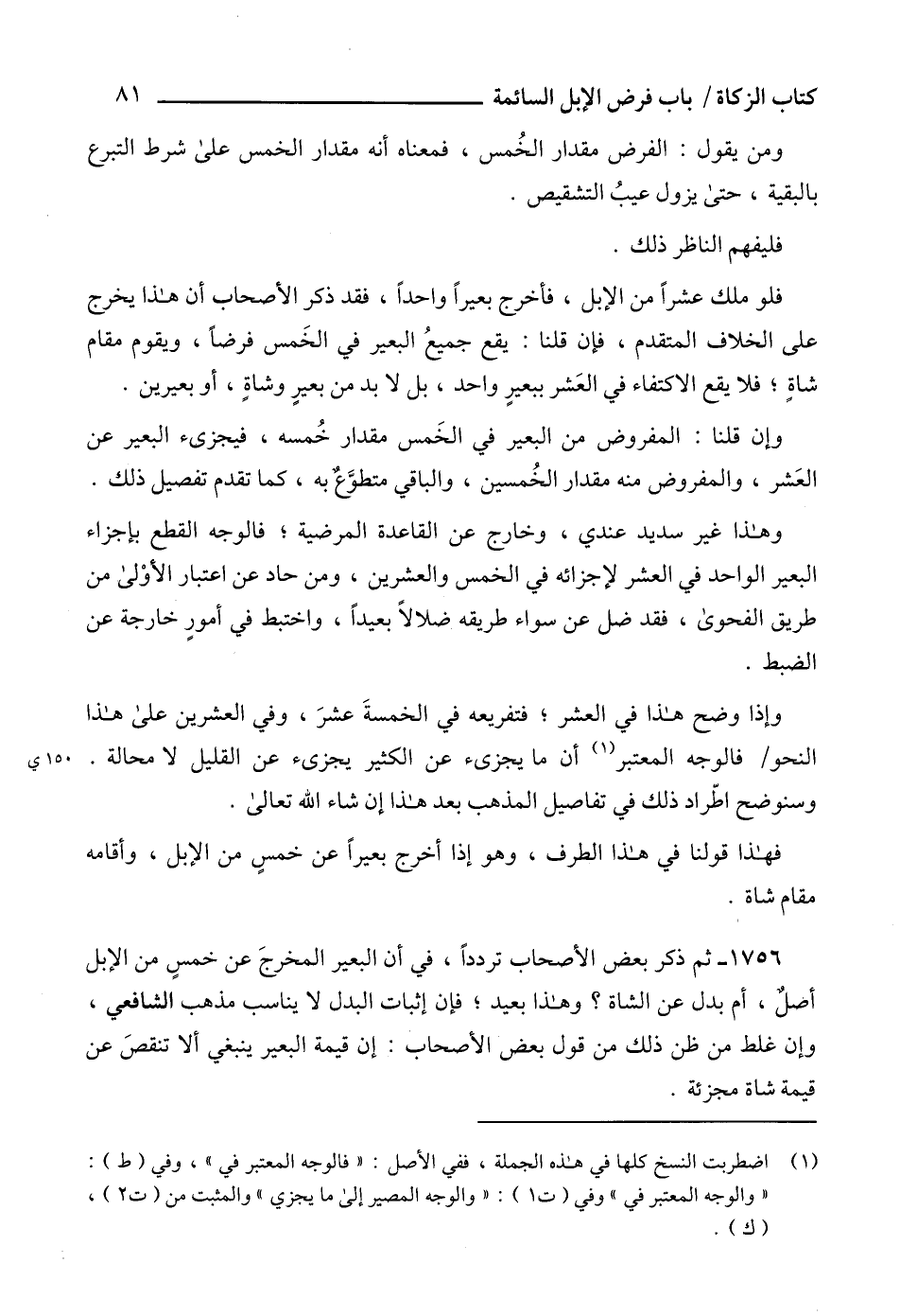 (1) اضطربت النسخ كلها في هذه الجملة، ففي الأصل: "فالوجه المعتبر في"، وفي (ط): "والوجه المعتبر في" وفي (ت 1): "والوجه المصير إلى ما يجزي" والمثبت من (ت 2)، (ك).