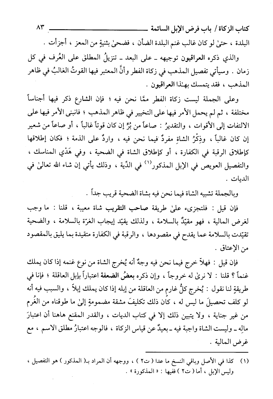 (1) كذا في الأصل وباقي النسخ ما عدا (ت 2)، ووجهه أن المراد بـ (المذكور) هو التفصيل، وليس الإبل، أما (ت 2) ففيها: "المذكورة".