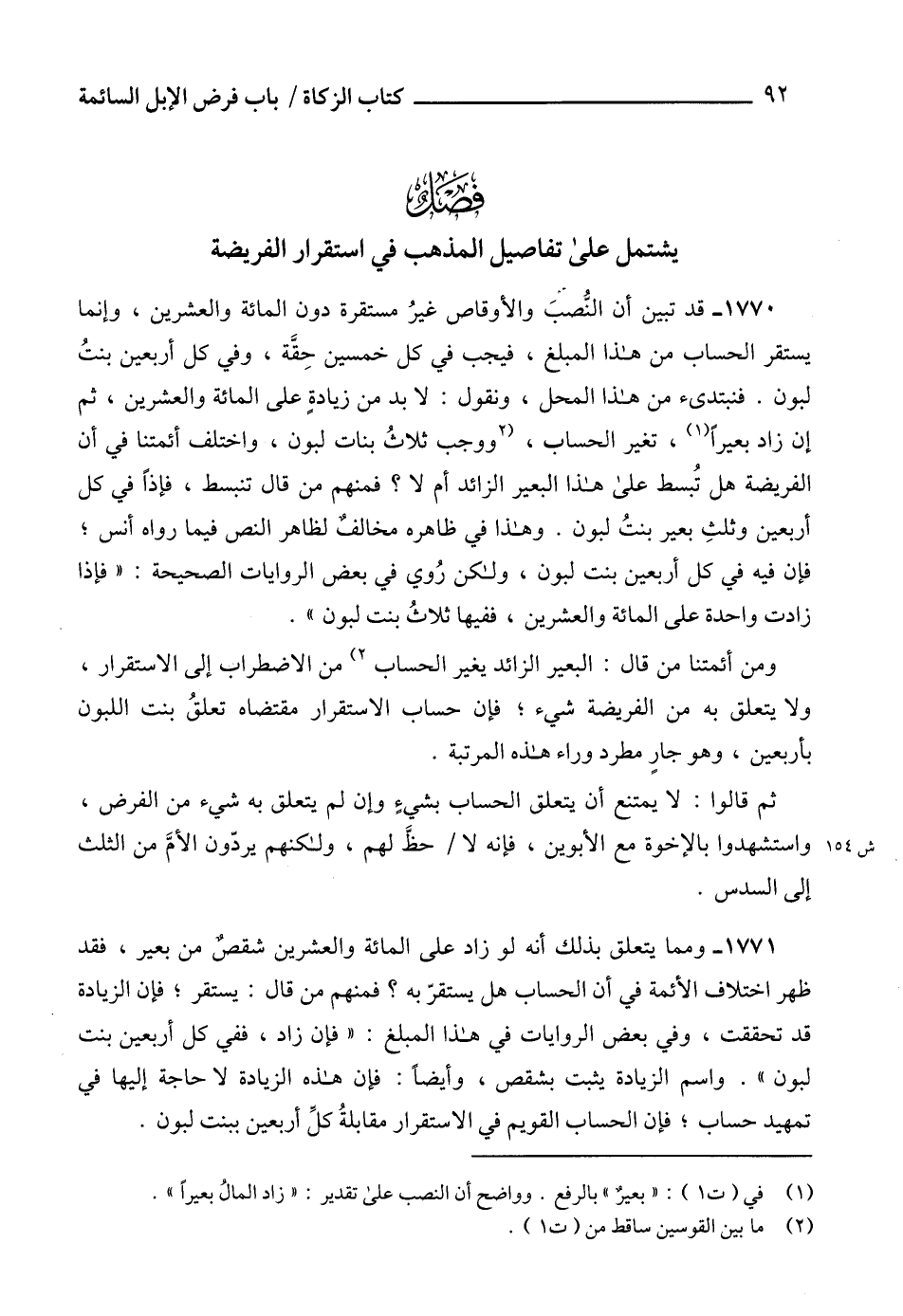 يشتمل على تفاصيل المذهب في استقرار الفريضة