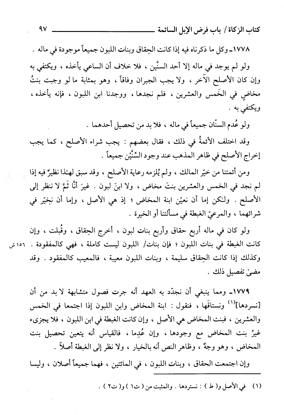 1778 - وكل ما ذكرناه فيه إذا كانت الحِقاق وبنات اللبون جميعاً موجودة في ماله.