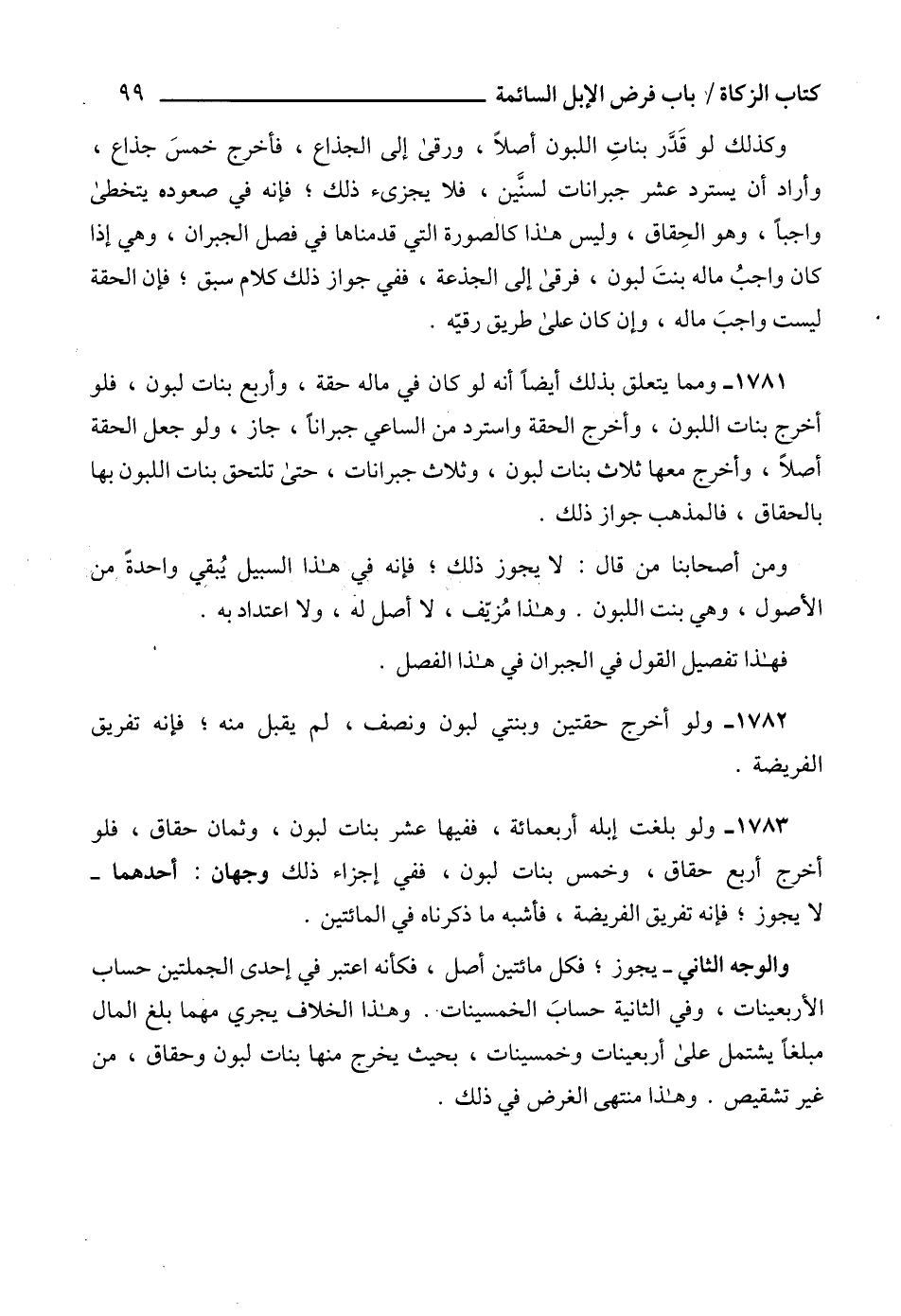 1781 - ومما يتعلق بذلك أيضاً أنه لو كان في ماله حقة، وأربع بنات لبون، فلو أخرج بنات اللبون، وأخرج الحقة واسترد من الساعي جبراناً، جاز، ولو جعل الحقة أصلاً، وأخرج معها ثلاث بنات لبون، وثلاث جبرانات، حتى تلتحق بنات اللبون بها بالحقاق، فالمذهب جواز ذلك.
