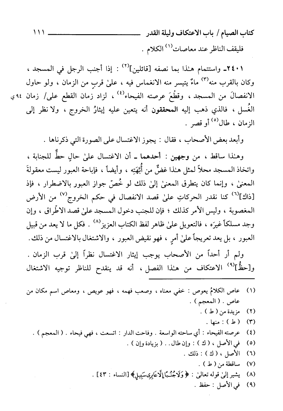 (8) يشير إلى قوله تعالى: {وَلَا جُنُبًا إِلَّا عَابِرِي سَبِيلٍ} [النساء: 43].