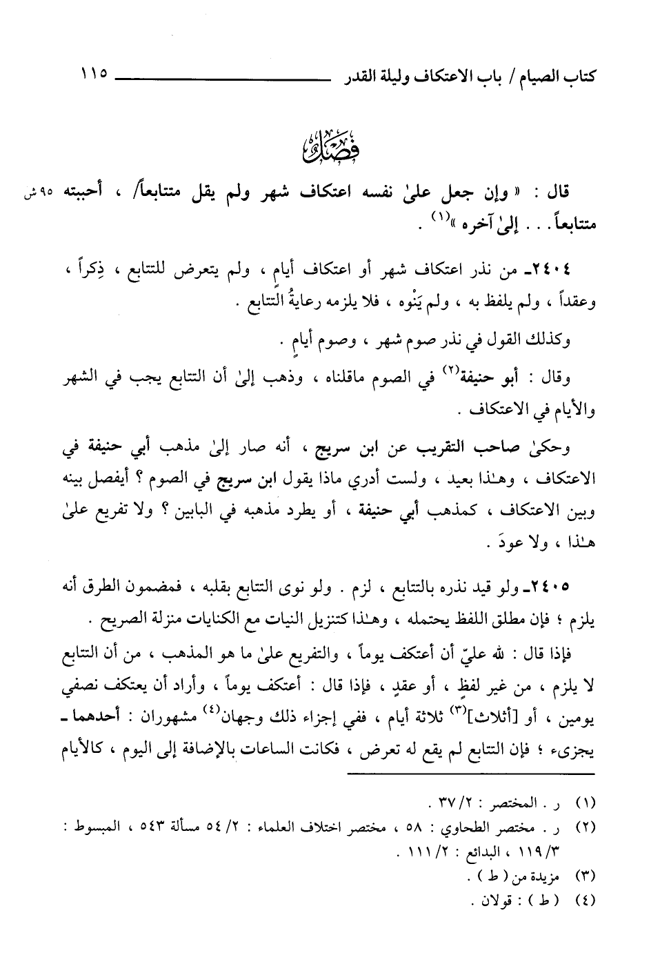 (2) ر. مختصر الطحاوي: 58، مختصر اختلاف العلماء: 2/ 54 مسألة 543، المبسوط: 3/ 119، البدائع: 2/ 111.