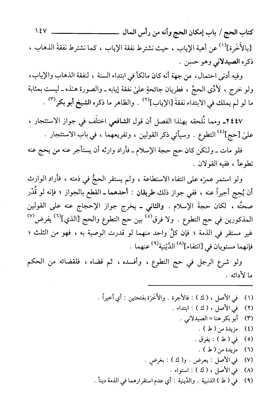 2447 - ومما نُلحقه بهذا الفصل أن قول الشافعي اختلَف في جواز الاستئجار، على [حج] (4) التطوع. وسيأتي ذكر القولين، وتفريعهما، في باب الاستئجار.